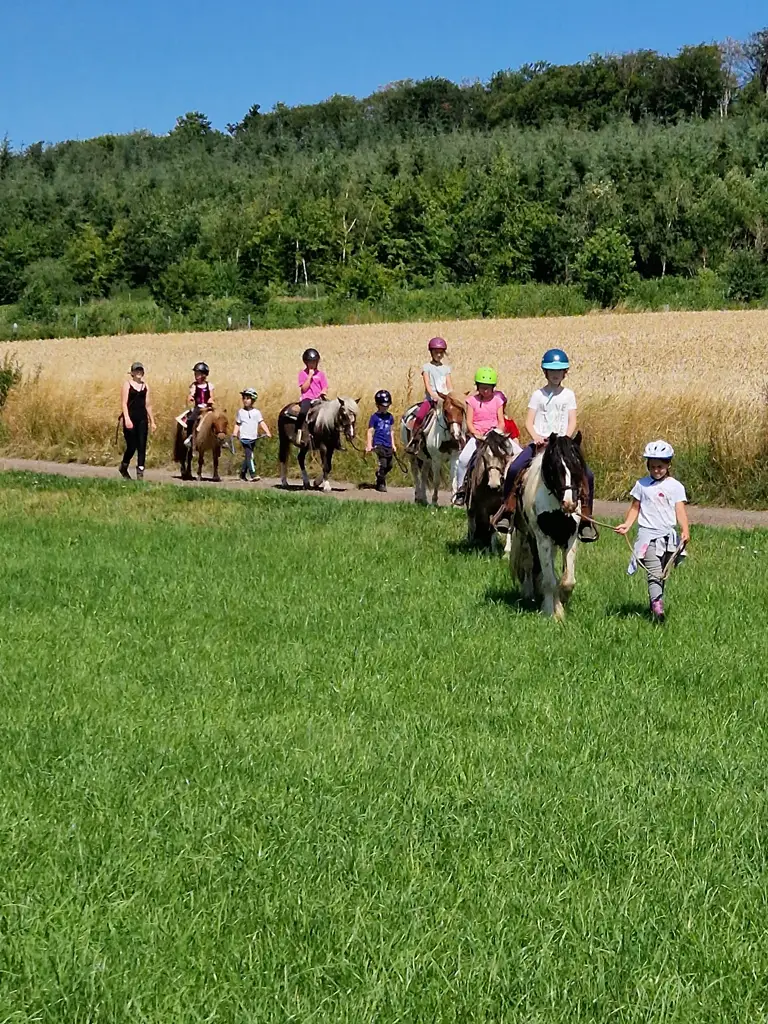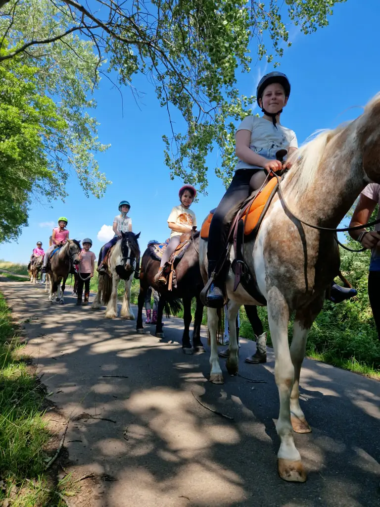 Zur Ferienzeit bieten wir unabhängig von unseren Reitstunden Ferienfreizeiten an. Während der Oster- und Herbstferien finden diese tageweise statt. Mit viel Spaß und Spannung rund um’s Pferd gestalten kompetente Trainer Reitunterricht und Ferienspiele.